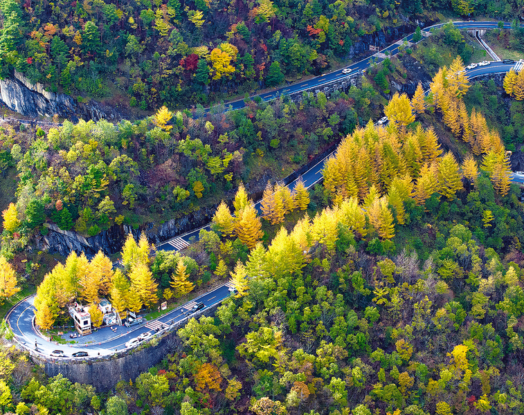 深秋时节,秦巴腹地层林尽染。化龙山间的541国道,在红叶的簇拥下如一条流动的风景线。